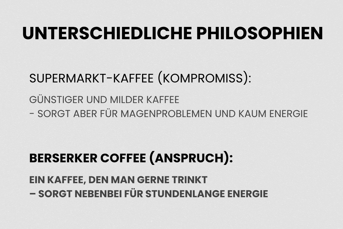 Das ist der Unterschied: Supermarkt-Kaffee ist Kompromiss. Berserker ist Anspruch. An Wirkung, an Geschmack, an Qualität.