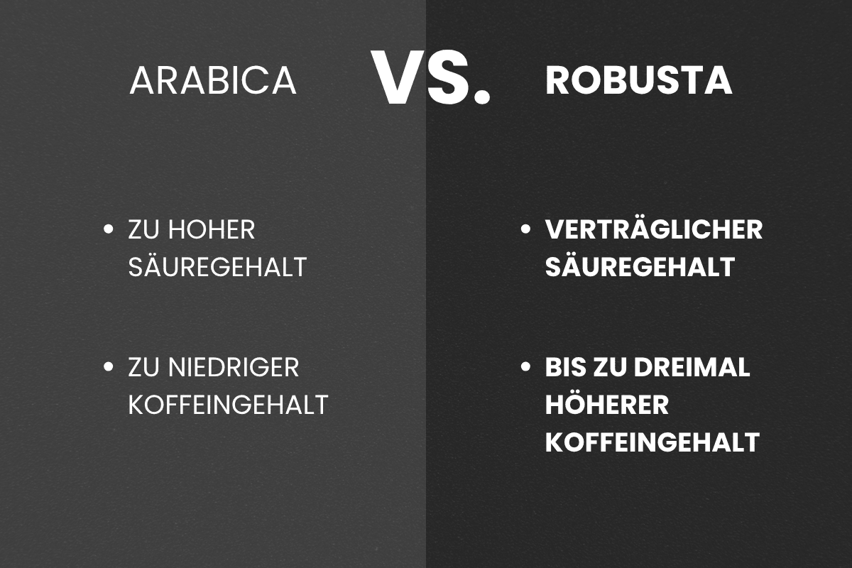 Warum trotz guter Röstung Magenprobleme? Der Arabica-Anteil im Blend bringt von Natur aus deutlich mehr Fruchtsäuren mit, die selbst beste Röstung nicht vollständig kompensieren kann.